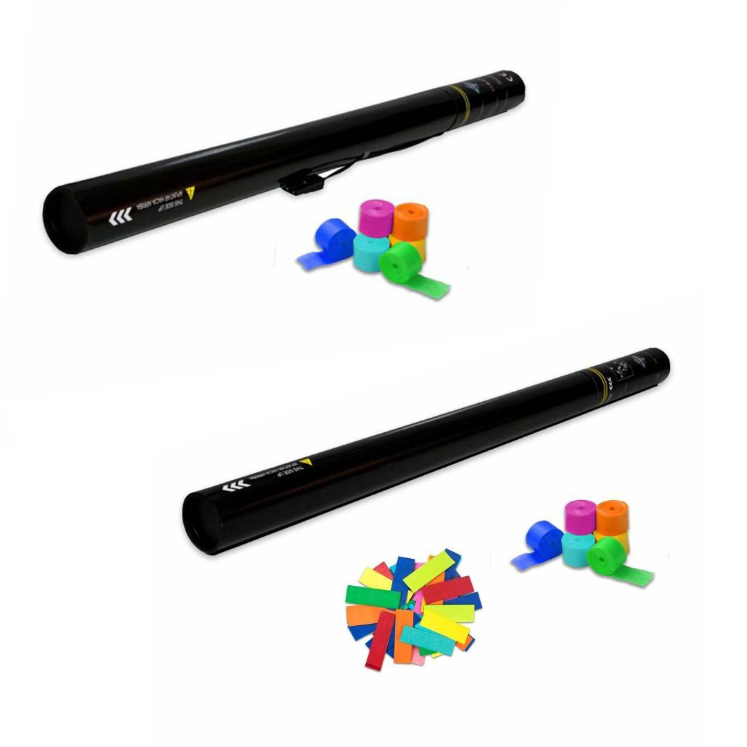 - Cañones de 30 cm: Cargan unos 50g. Ideales para fiestas infantiles o espacios con techos bajos (menos de 3 metros).