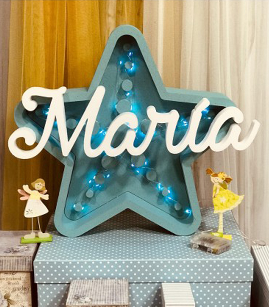 ¿Quieres que el bautizo de tu hijo o hija sea diferente y original al mismo tiempo? Ese propósito lo conseguirás con nuestras letras y figuras de corcho para bautizos. Te ofrecemos desde esta luna personalizada con su nombre, hasta esta otra figura con su nombre, o esta cigüeña.