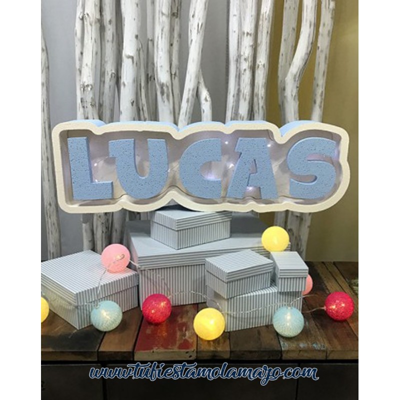 Caja de luz Niño personalizado con el nombre, es el regalo perfecto para bautizos o decoración de la habitación de los más peques de la casa.