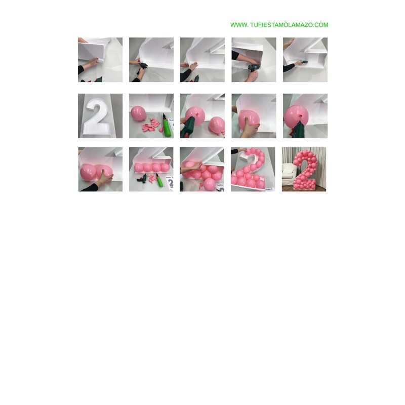El frame, Mosaico o Marco no viene preparado para nada más sacarlo de la caja ponerse a pegarle globos y lleva un rato de montaje.