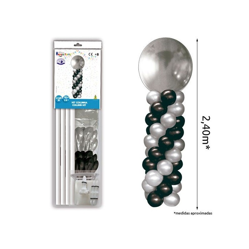 CONTIENE; LA COLUMNA PARA MONTAR + 50 GLOBOS REDONDOS DE LÁTEX METALIZADOS +1 GLOBO GIGANTE METALIZADO DE 80CM
