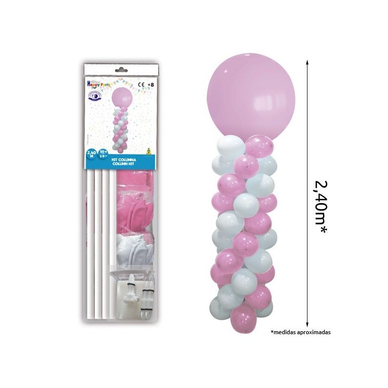 CONTIENE; LA COLUMNA PARA MONTAR + 50 GLOBOS REDONDOS DE LÁTEX +1 GLOBO GIGANTE DE 80CM