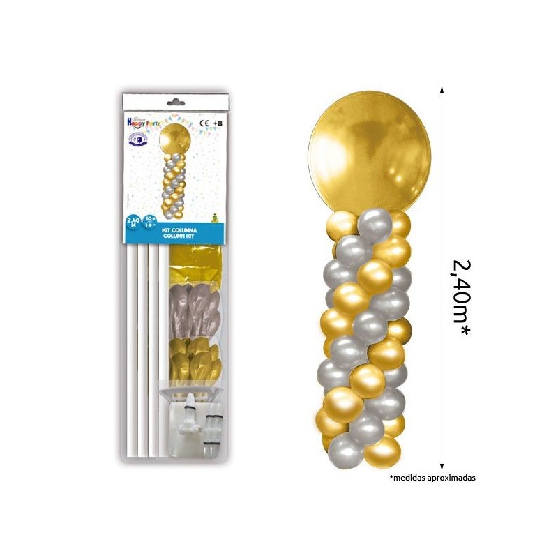 CONTIENE; LA COLUMNA PARA MONTAR + 50 GLOBOS REDONDOS DE LÁTEX METALIZADOS +1 GLOBO GIGANTE METALIZADO DE 80CM