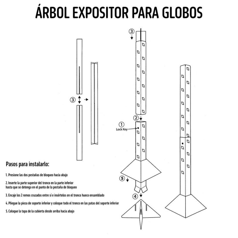 Este árbol expositor para globos es la solución perfecta para quienes buscan una presentación ordenada y llamativa. Fabricado 100% en cartón, es una opción ecológica, ligera y resistente. Con una altura de 1,60 metros, cuenta con múltiples orificios distribuidos a lo largo del tronco donde se pueden colocar varillas con globos inflados con aire, permitiendo una capacidad aproximada de 50 a 60 globos.