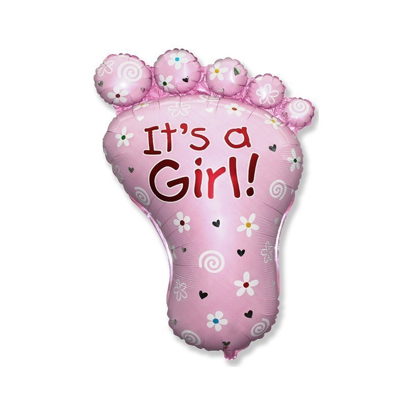 Globos de foil con forma de pie "It's a girl" para darle la bienvenida a la recién nacida como se merece!