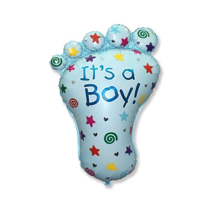 Globos de foil con forma de pie "It's a boy" para darle la bienvenida a la recién nacida como se merece!