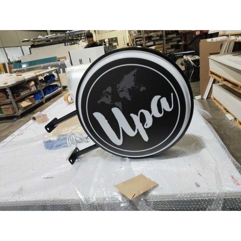¿Quieres una banderola luminosa redonda a buen precio? En Rotula Tú Mismo te ofrecemos banderolas luminosas muy económicas y de gran calidad. Esta banderola luminosa circular va rotulada a ambas caras y además te la enviamos preparada para colocar con su tornillería.