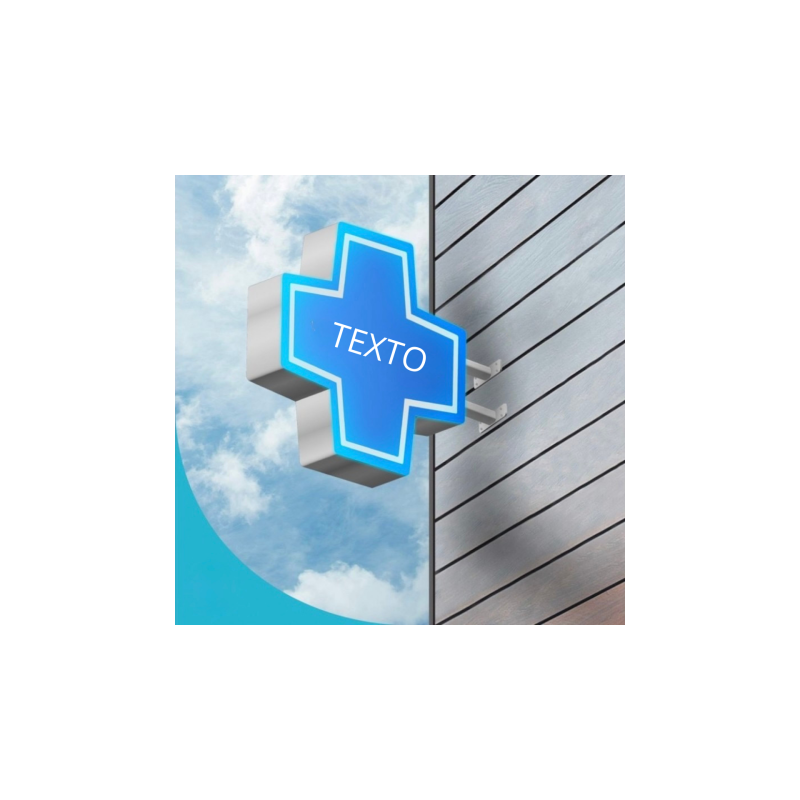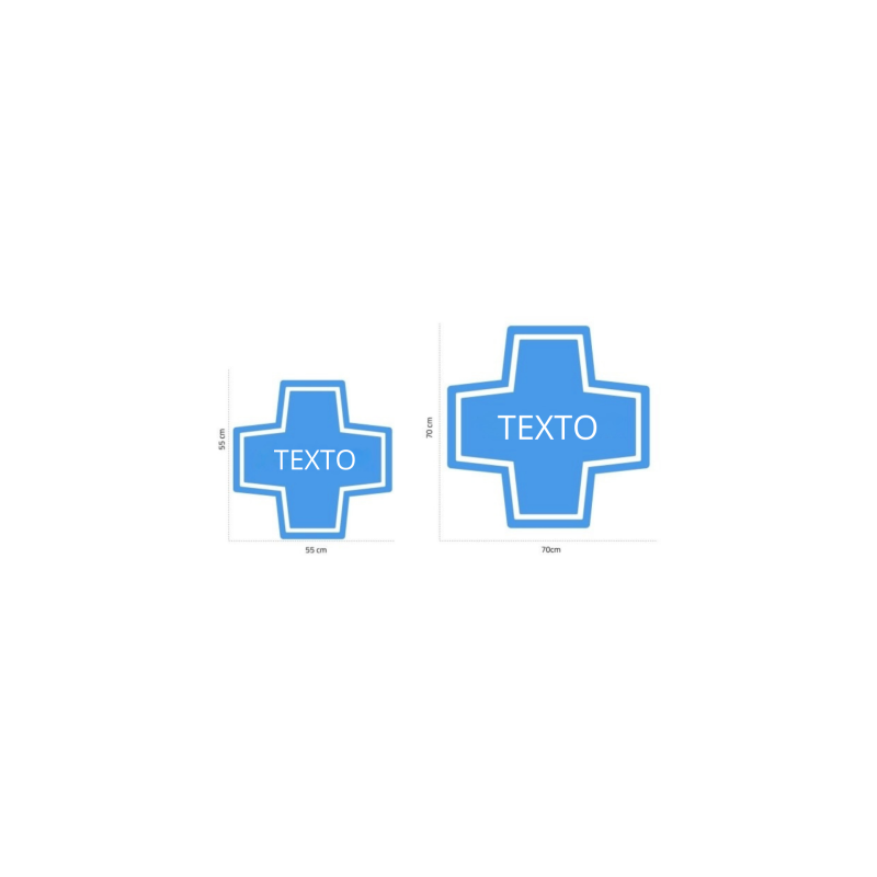 Cruz de veterinaria con iluminación LED para clínicas veterinarias, disponible en dos tamaños diferentes: 55 x 55 cm y 70 x 70 cm.