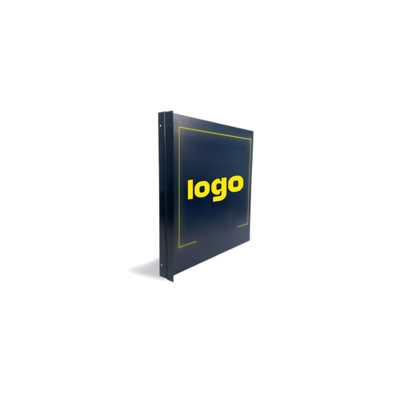 Archivos y Plantillas Banderola formada por dos perfiles de aluminio atornillados a la pared que sustentan una lámina de múltiples medidas.