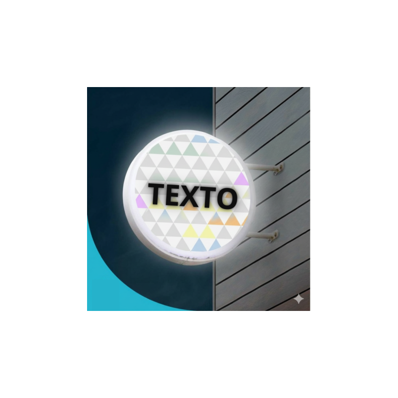 Banderola luminosa redonda de doble cara con luz. Compuesta por una estructura sólida con dos placas de metacrilato de 3mm de grosor situadas a cada lateral. Esta banderola luminosa redonda incluye tubos fluorescentes y la rotulación. Puede elegir entre perfilería blanca, negra o personalizado.