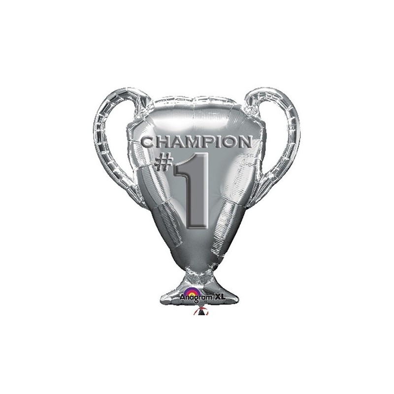 Globos de foil con forma Trofeo de Champions la ansiada orejona con la medidas 71 x 63 cm. En color plateada. Se vende sin hinchar.