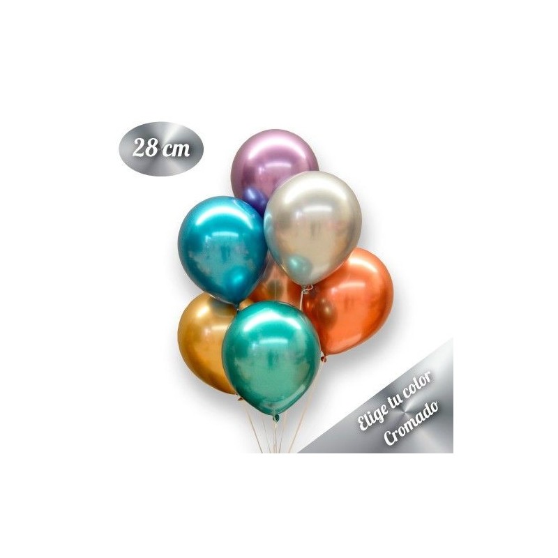 Bolsa de 50 globos de látex DECO de 28 centímetros/11 pulgadas de diámetro cromados ¡Lo último en decoración con globos! Lo que los hace tan especiales es su acabado; muy, muy sólido, con aspecto metálico, recuerdan al acero cromado. Muy modernos y elegantes. Hemos hecho una selección de los colores más atractivos para decorar, y tú eliges a tu gusto, puedes elegir hasta 5 colores. Ideal para decorar todo tipo de eventos y celebraciones particulares y corporativos. Eventos populares, inauguraciones de tiendas, fiestas, desfiles ¡Los globos siempre quedan bien!.