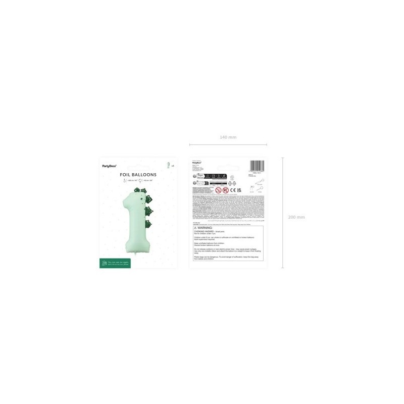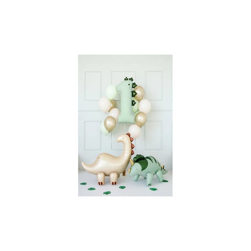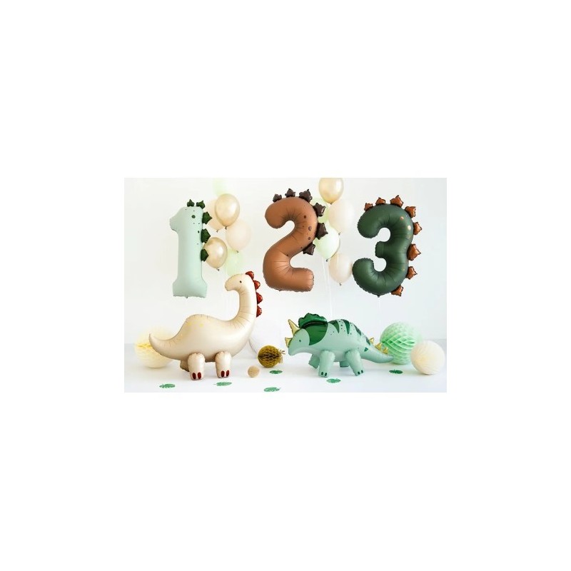 - Globos foil DECO número 89 cm de alto en color menta con forma de dinosauirade la marca Partydeco