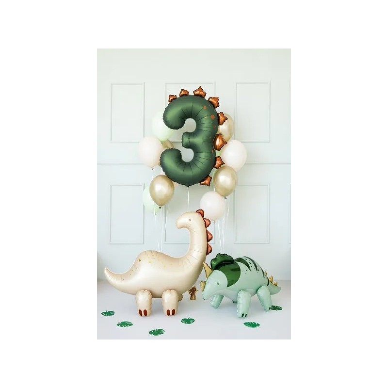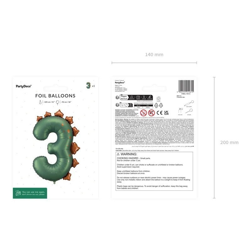 Globos de Foil Jumbo de 36" (92Cm) Número "3" DINOSAURIO VERDE. Fabricados por Partydeco.