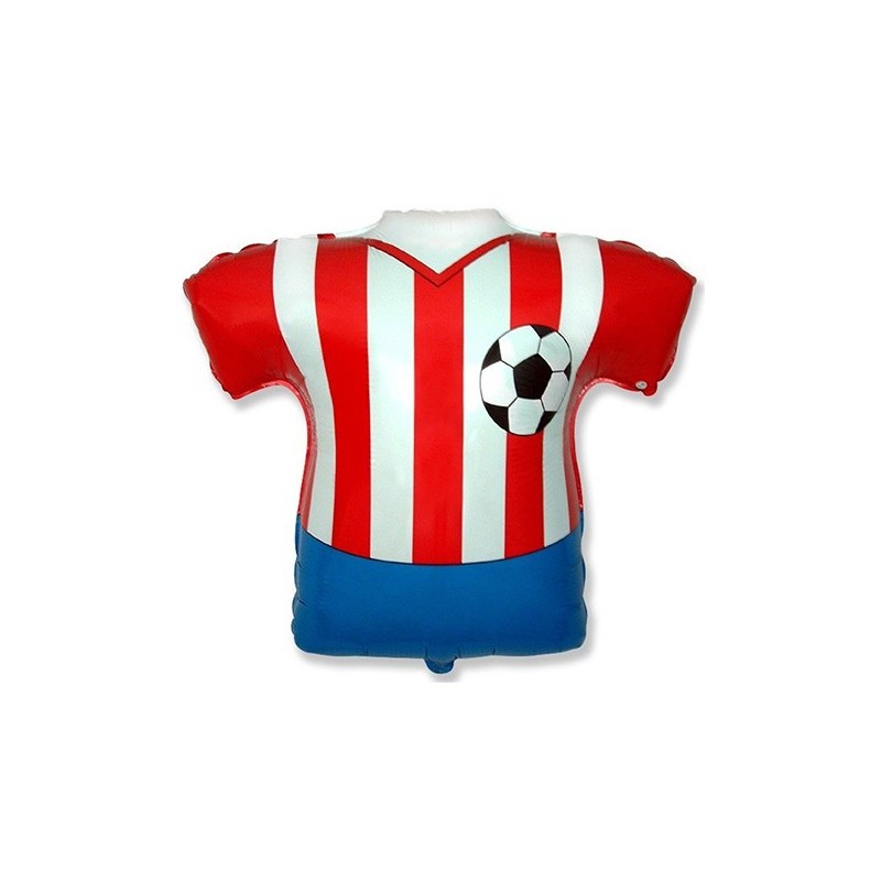 Globo foil con forma de camiseta de fútbol de rayas rojas y blancas.