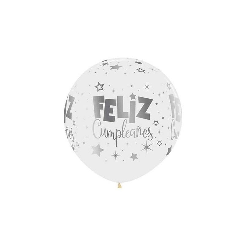 Globos Redondos de Látex cristal que llevan escrito FELIZ CUMPLEAÑOS con tinta METALIZADA.