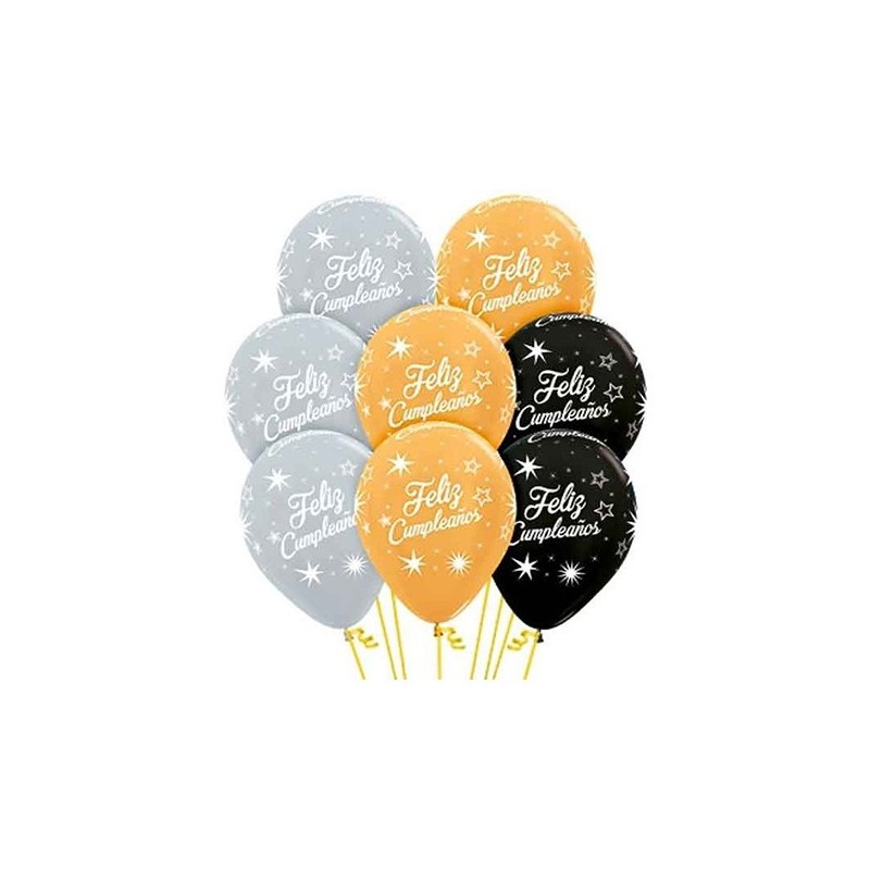 Globos redondos R-12 Surtido FELIZ CUMPLEAÑOS DESTELLOS