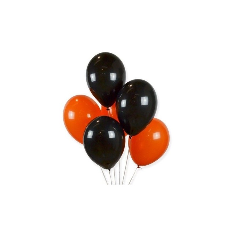 Bolsa de 30 globos DECO látex de 28cms/11” negros&naranjas para Halloween