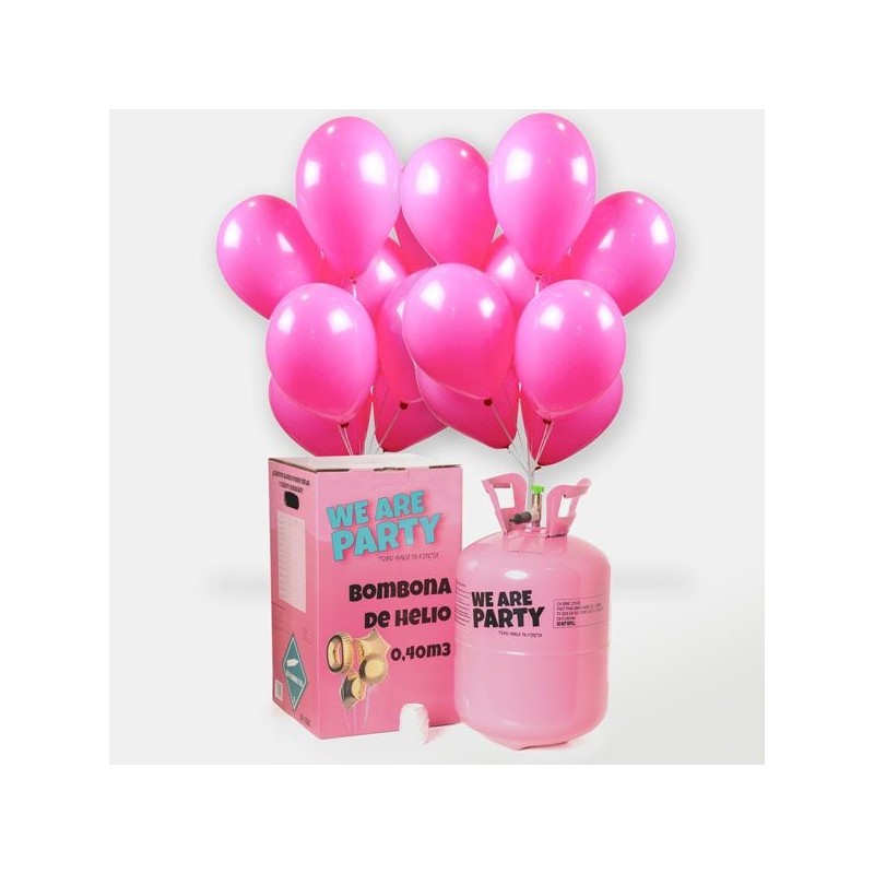 Pack de bombona de helio con 50 globos rosa de 28 cm.