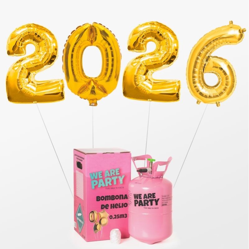 El pack incluye una bombona de helio Mini de 0,25m3, más 4 globos foil con forma de número aptos para helio marca Anagram de 86cm de alto con 60m de cinta blanca para poderlos atar. Si usas correctamente la bombona de helio podrás inflar los 4 globos foil de número.