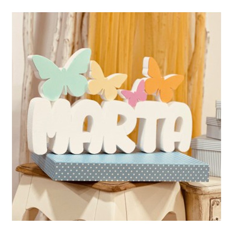 Efecto 3D de Alta Densidad: Tanto el nombre como las figuras de las mariposas están superpuestos sobre la base de porexpán blanco, garantizando un acabado profesional y resistente.