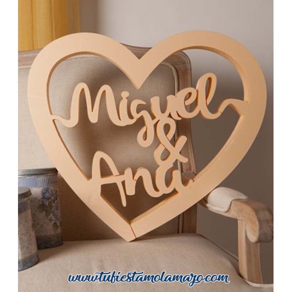 Corazón de enamorados personalizado con los nombres en color beige, es perfecto para decorar el día de tu boda o el día de los enamorados.