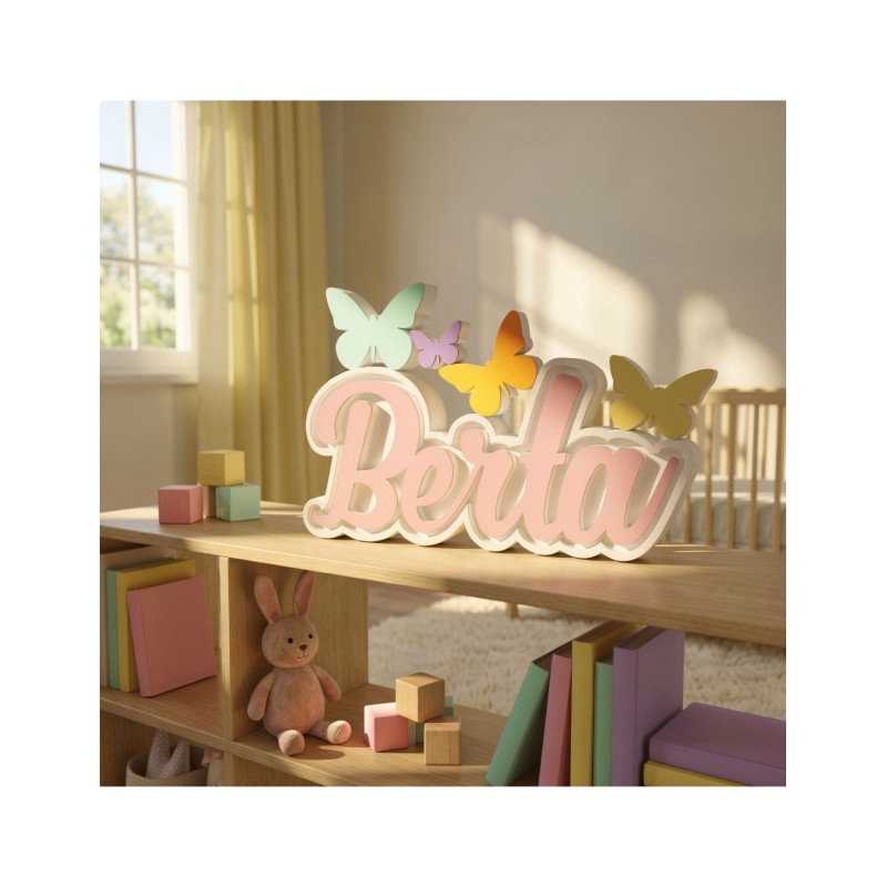 Caja de luz Nombre de niña en corcho para comunión personalizado y mariposas de colores