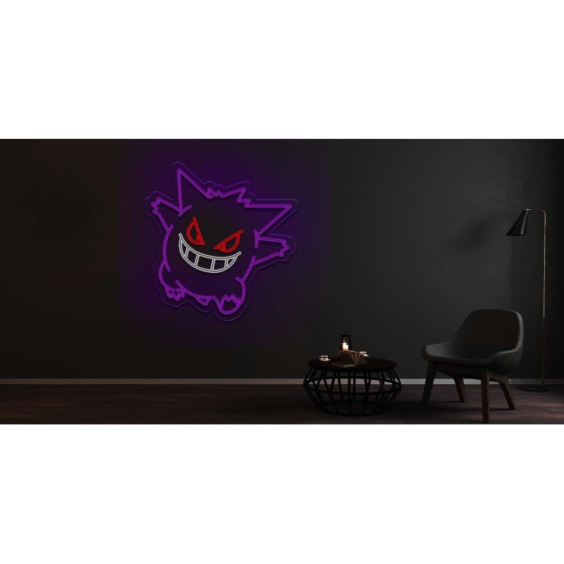 El neón inspiración Gengar está fabricado con materiales de alta calidad, que garantizan su durabilidad y resistencia.