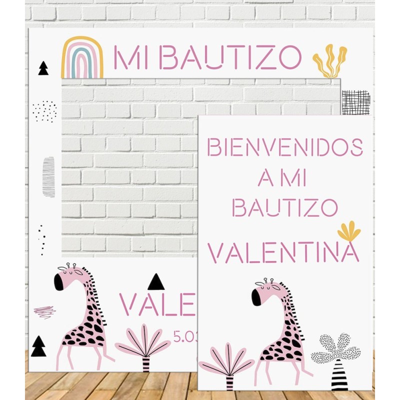 Original Photocall y cartel de Bautizo de jirafas Personalizado en cartón, decorado con motivos de originales jirafas de bautizo, para hacer el día más especial de tu hija.