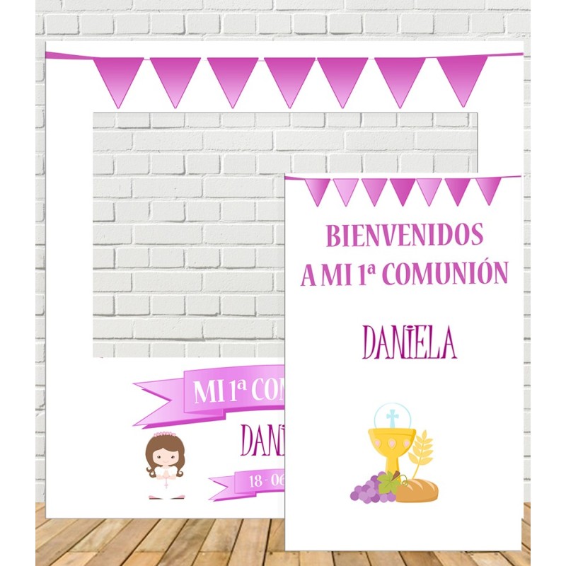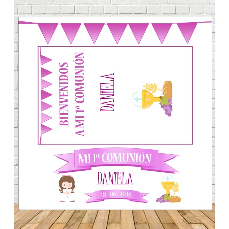 El marco de photocall te lo personalizamos para tu comunión o cumpleaños tu eliges ya que te lo diseñamos a tu gusto en colores y textos.