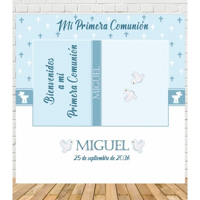 Photocall Comunión de Pokemon Personalizado y decorado con ilustraciones de Pikachu y sus amigos, para que tu comunión tenga las fotos más divertidas