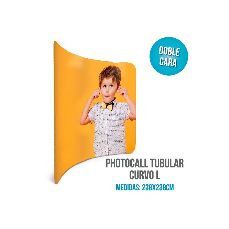 - Photocall tubular curvo L impreso a doble cara: 585€