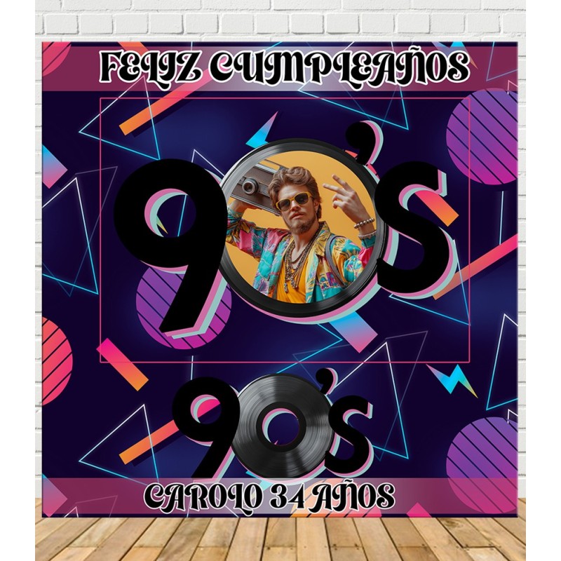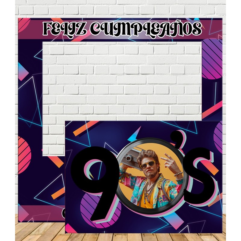 Photocall de Cumpleaños Personalizado de estilo 90s de lo más retro personalizado con la foto, el nombre y la edad.