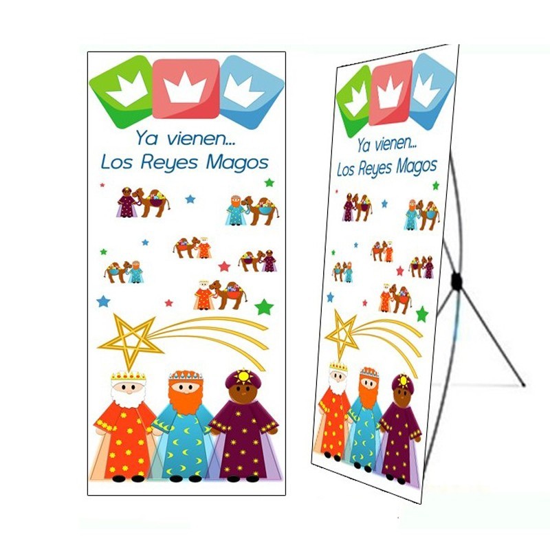Photocall de Reyes Magos 80x200cm, lona con impresión a todo color a una cara con base de trípode y bolsa de transporte
