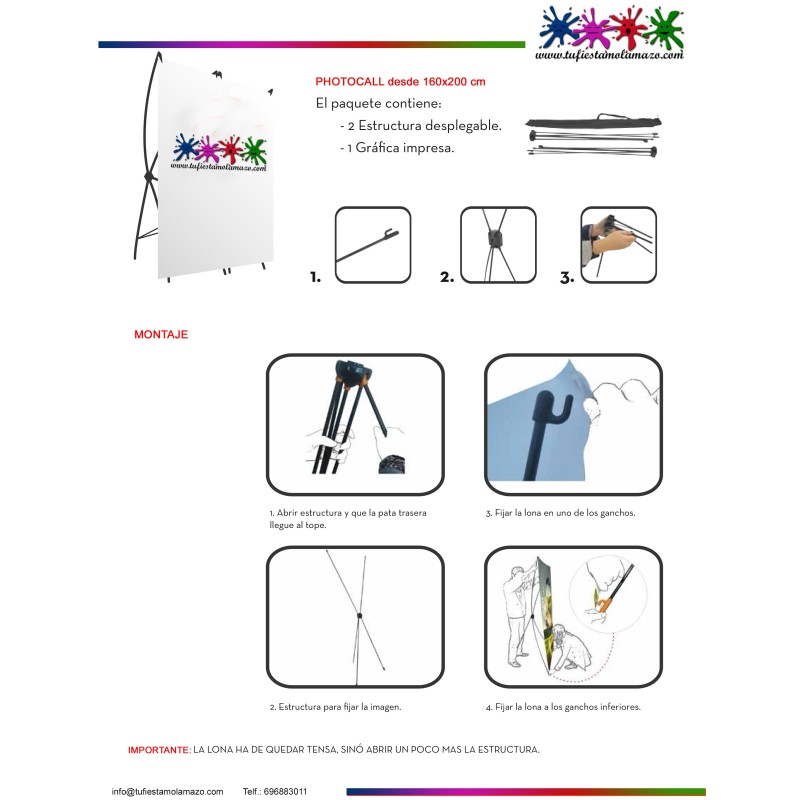 · Estructura photocoll de fibra de vidrio y pvc desplegable con base de trípode.
