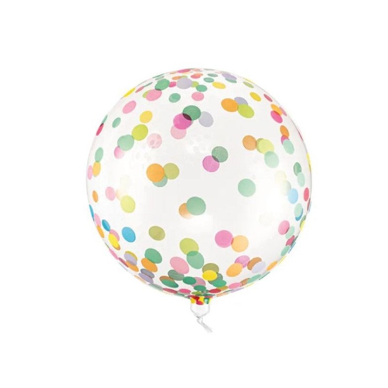 - Globo transparente tipo bubble (plástico TPR) de 40 cm con confeti multicolor