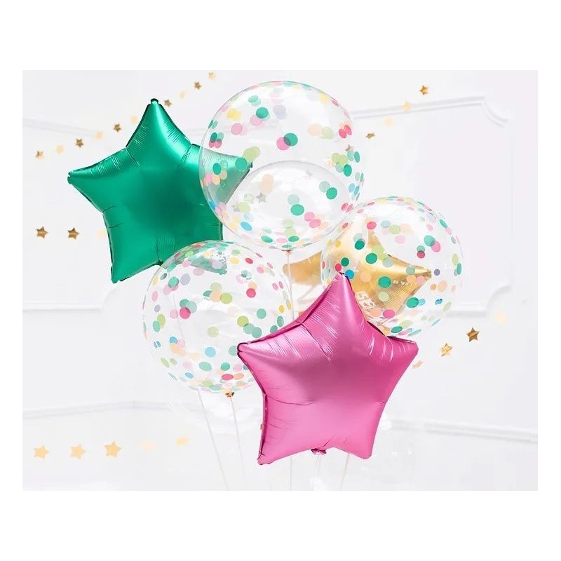 Este globo tipo bubble transparente de 40 cm con confeti multicolor es una opción perfecta para crear decoraciones llamativas, elegantes y duraderas. Gracias a su material flexible y resistente, puede flotar hasta 7 días si se infla con helio, consumiendo alrededor de 0,03 m³ por unidad. Con una bombona estándar de 0,40 m³, puedes inflar entre 12 y 13 globos. También se puede inflar con aire, y conservará su forma y aspecto decorativo durante más de una semana en interiores.
